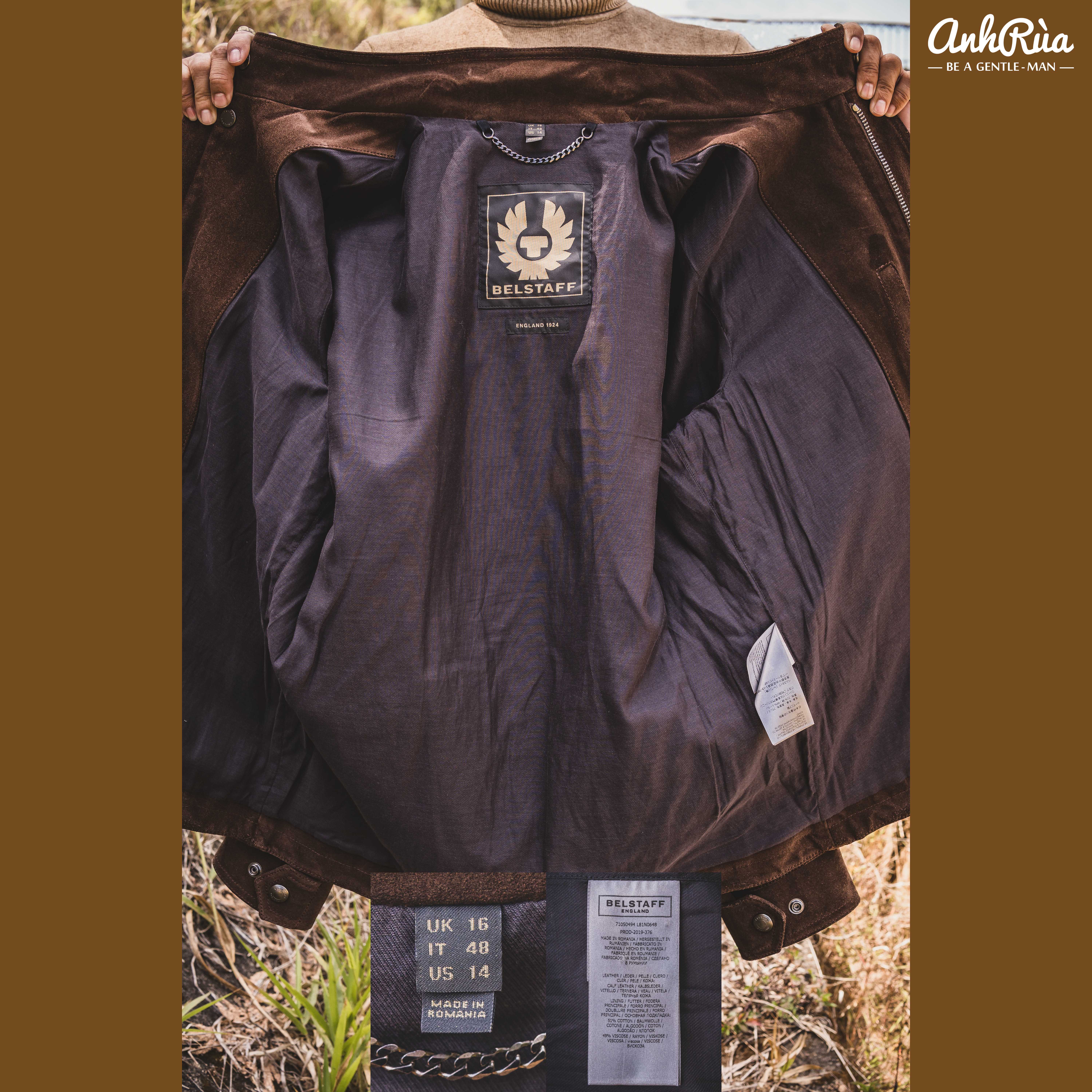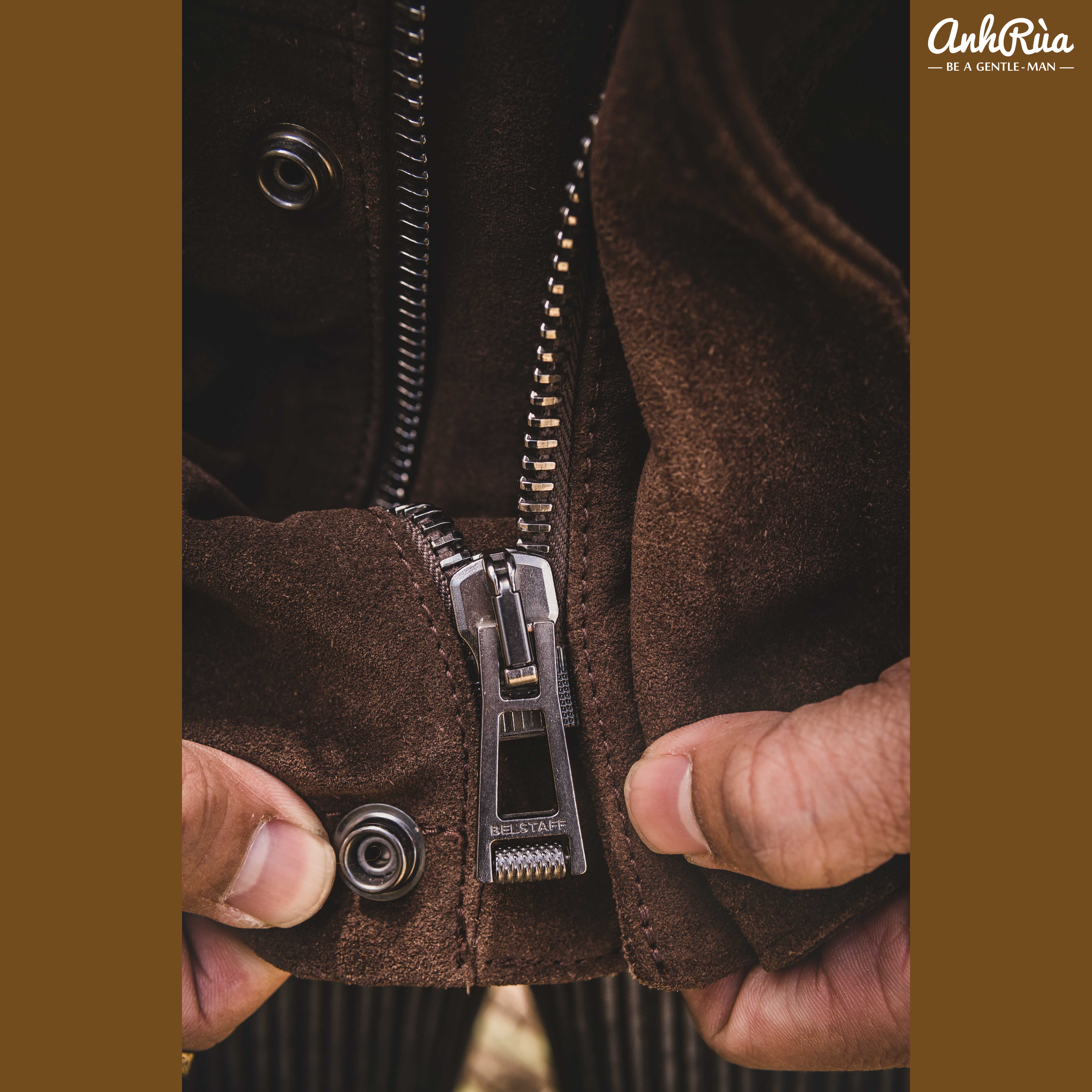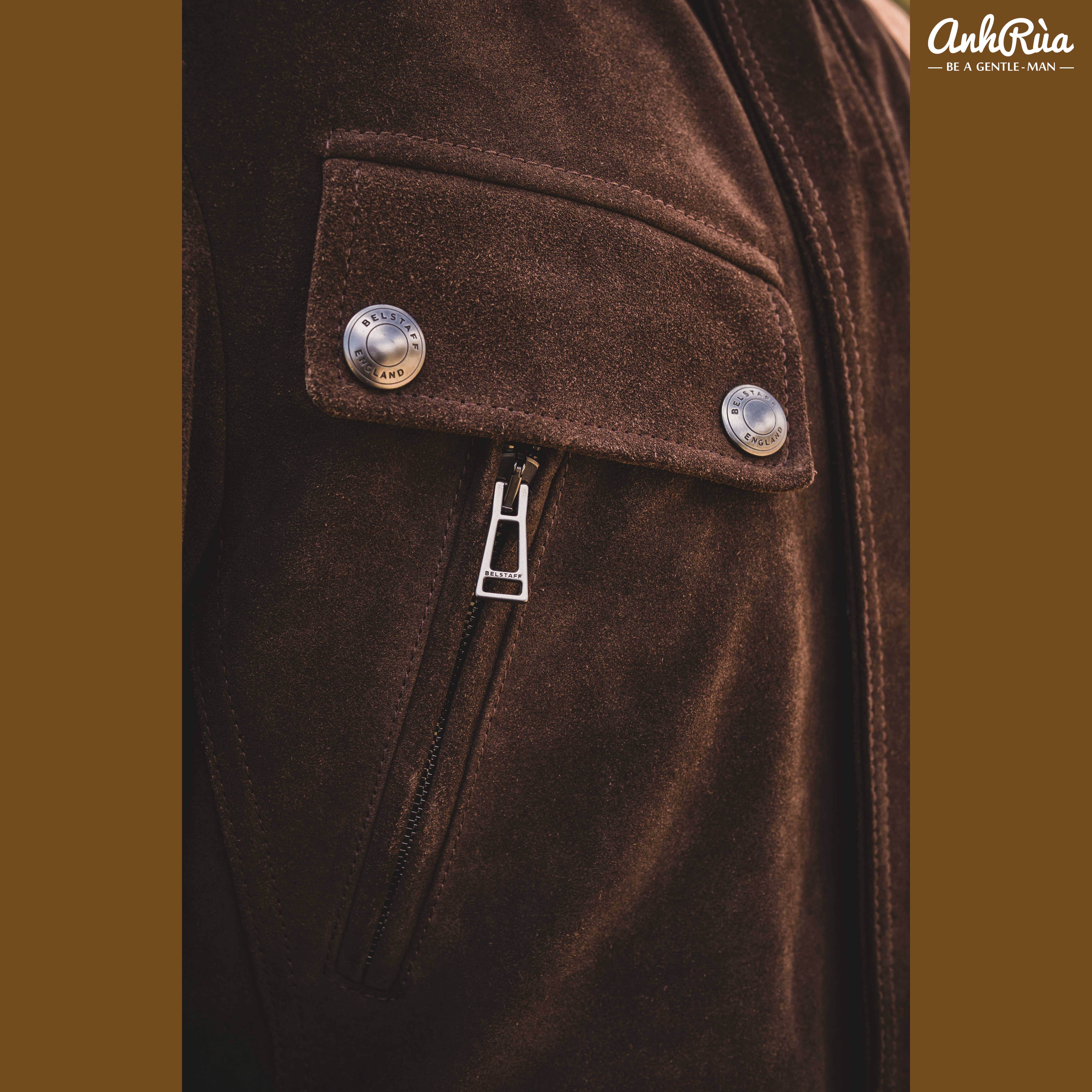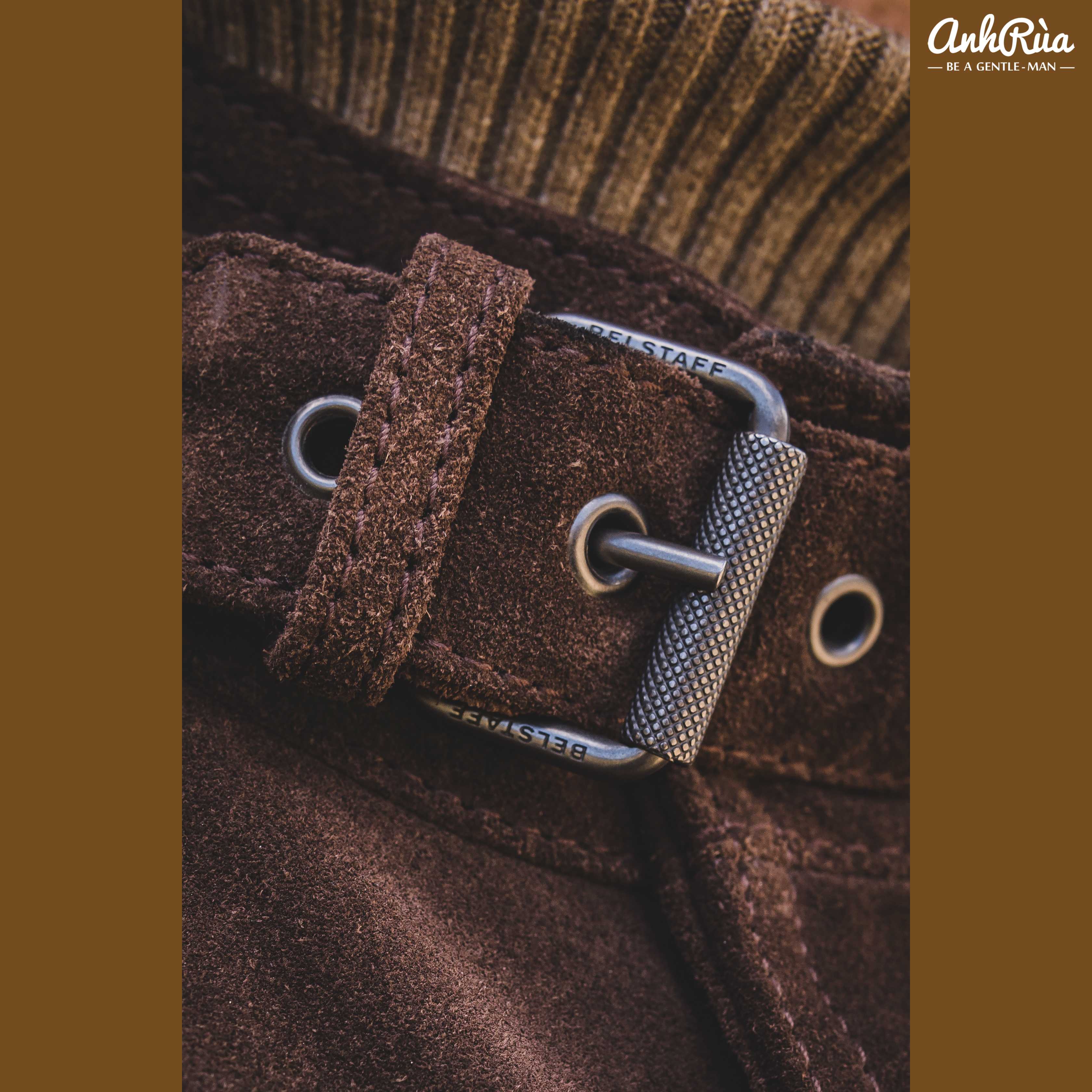 + Phụ kiện kim loại cao cấp với logo Belstaff dập tinh xảo – hoàn thiện tổng thể đầy sang trọng.