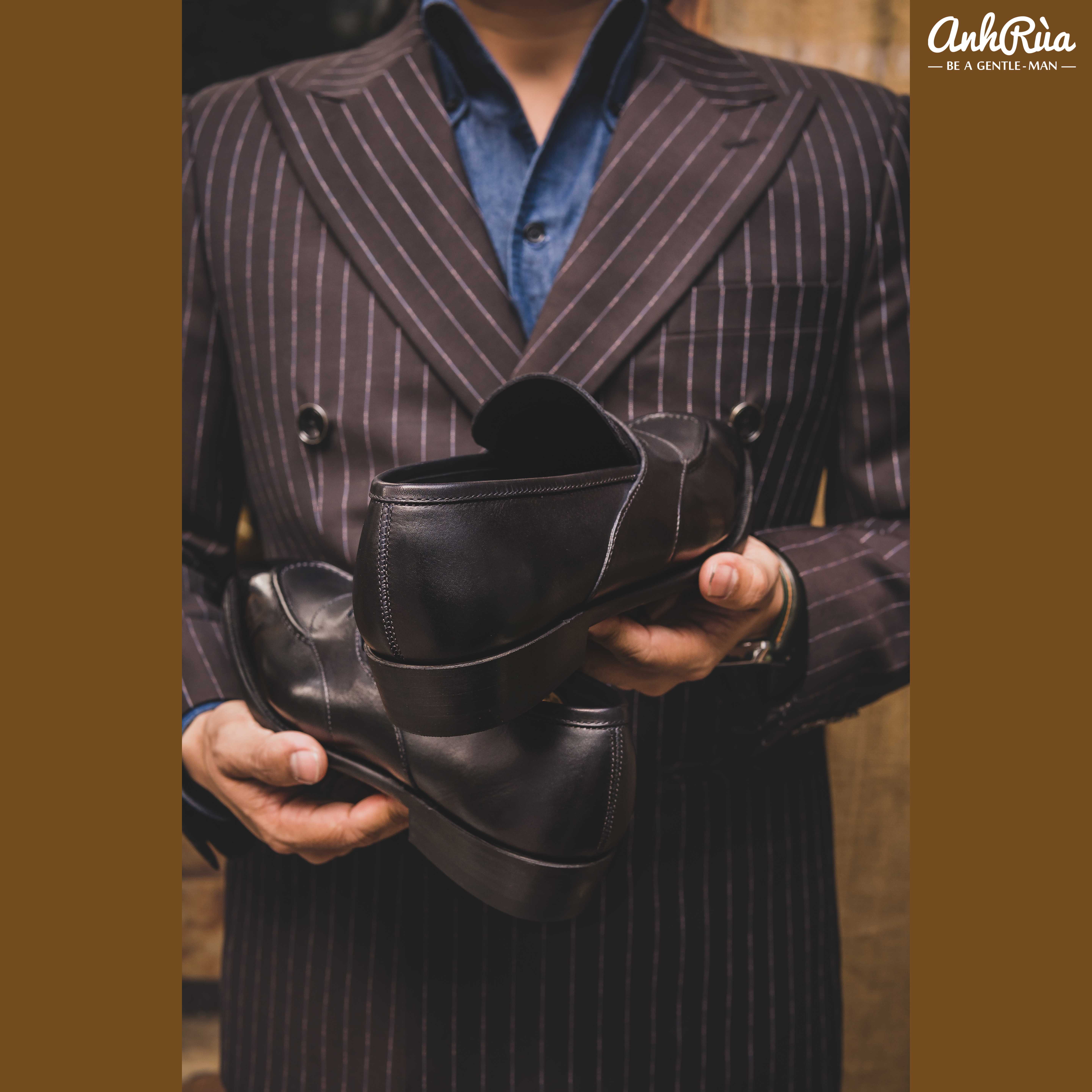 - Da mặt (upper): Da bê Ý (Italian calfskin) - nổi tiếng với độ mịn, độ dẻo và khả năng lên màu Patina xuất sắc. Đây là nền tảng để tạo nên một đôi giày vừa sang vừa có chiều sâu thẩm mỹ.