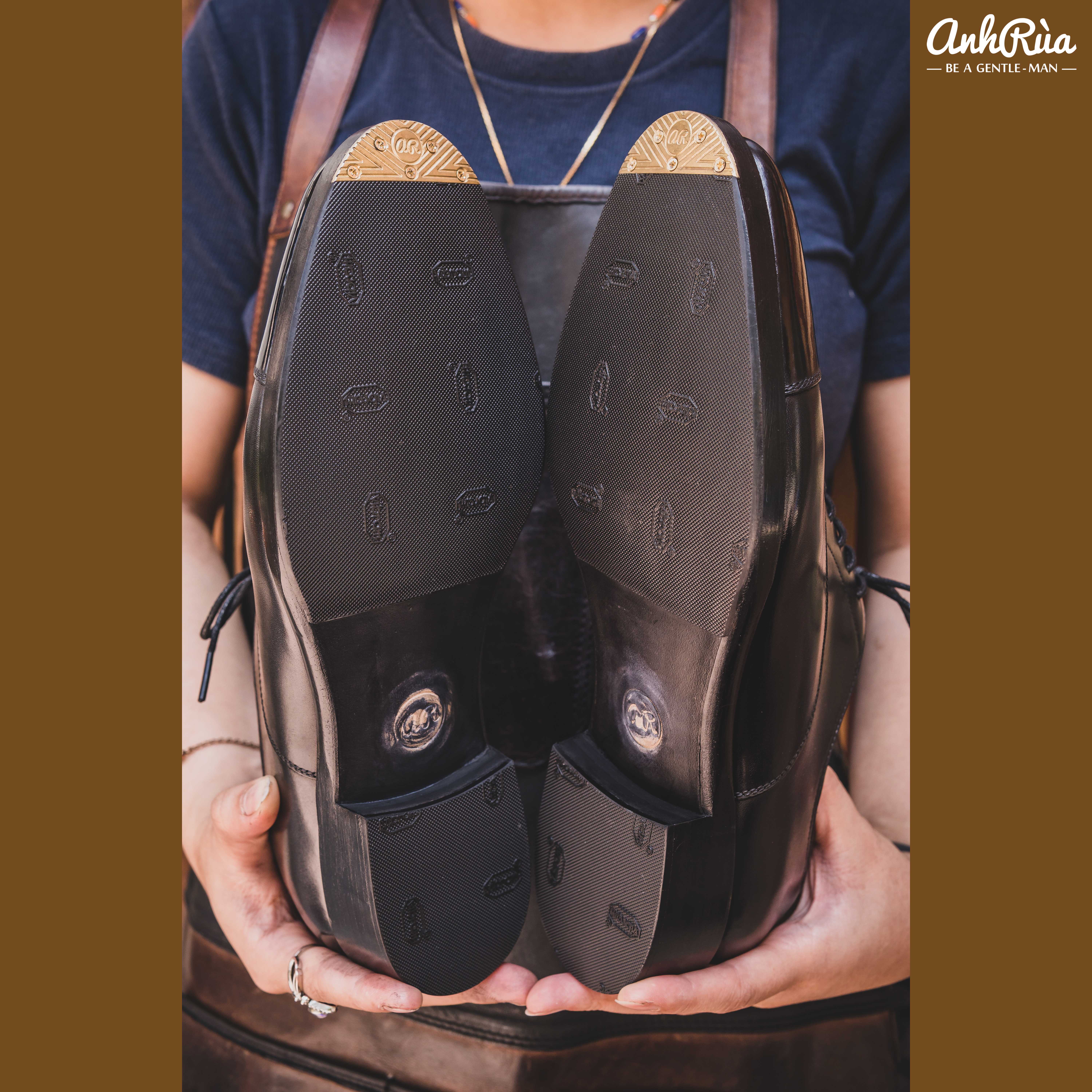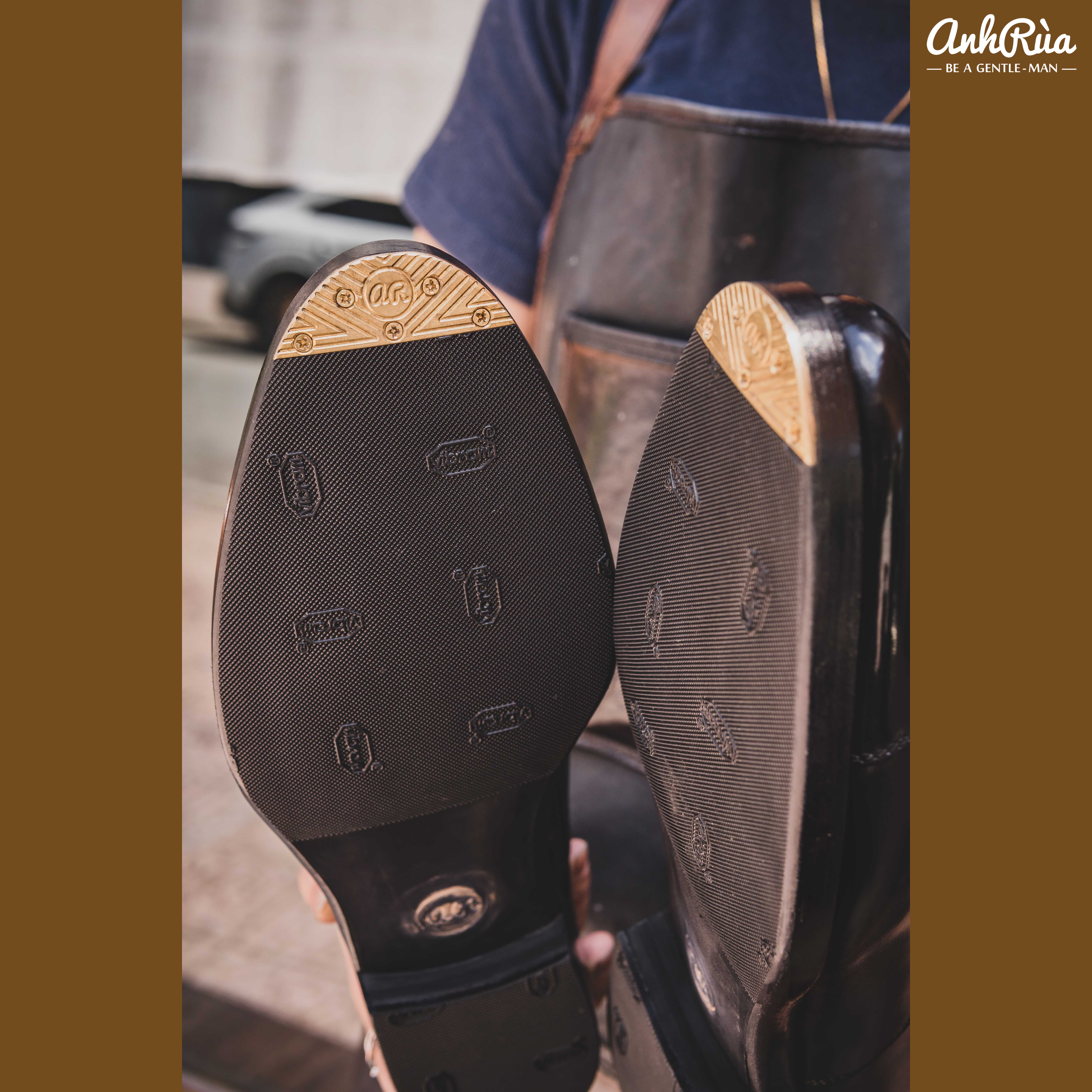 -Đế (outsole): Đế da Ý double sole – cấu tạo 2 lớp chắc chắn, đóng theo kỹ thuật Goodyear Welted cổ điển, cực kỳ bền bỉ, dễ thay đế về sau. Đôi giày có thể theo ta suốt nhiều năm nếu được chăm sóc tốt.